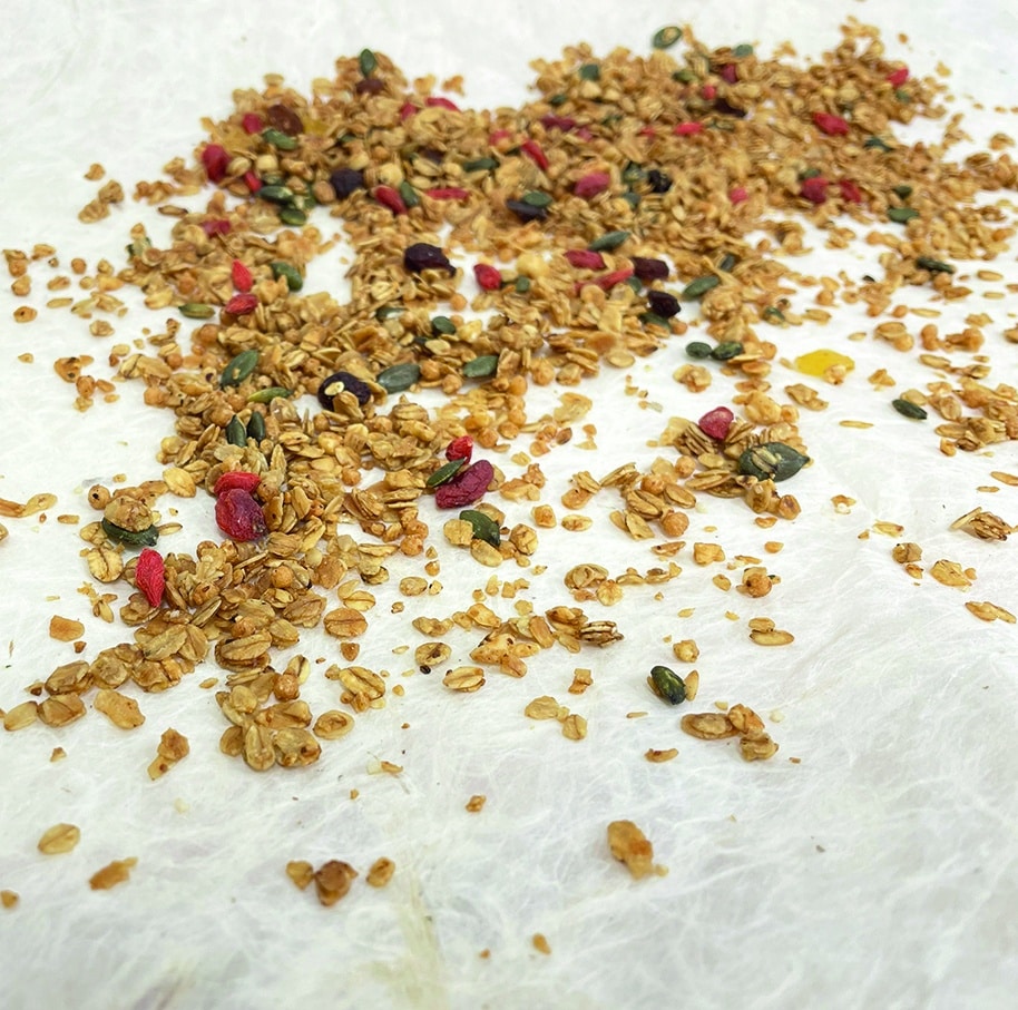 Gloednieuw in ons assortiment! suikerarme granola in 4 smaken: natuur/appel-kaneel/choc-banaan/noten&zaden. op unieke wijze gemaakt: gekarameliseerd met Zusto&vanille een smaakbommetje en super krokant.