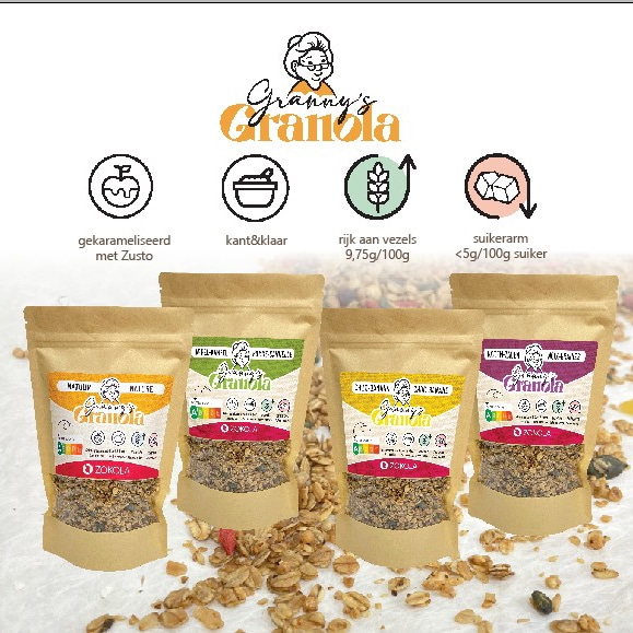 2025 wordt opnieuw een uitdagend jaar voor Zokola: in de lijn van onze keuze voor het suikerarme lanceren wij een volledig nieuwe productlijn: suikerarme granola, gekarameliseerd met Zusto en in 4 smaken.